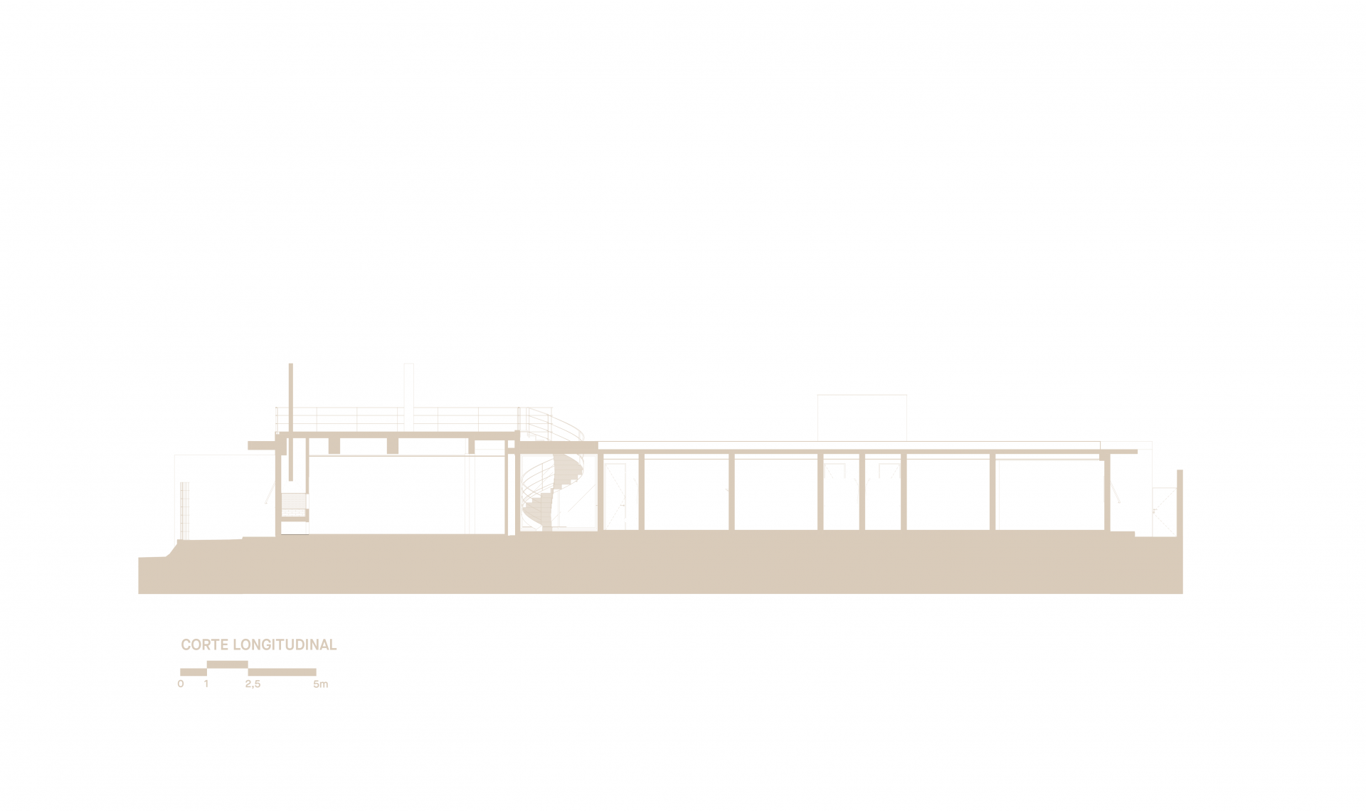 The social and intimate blocks were separated with the intention of creating a break in the access corridor, where a garden was located next to the helical staircase. This provides access to the uncovered terrace, overlooking the social areas and following the clients' premise of valuing the view of the sea, and providing them with a space to enjoy the late afternoon and the sunset.