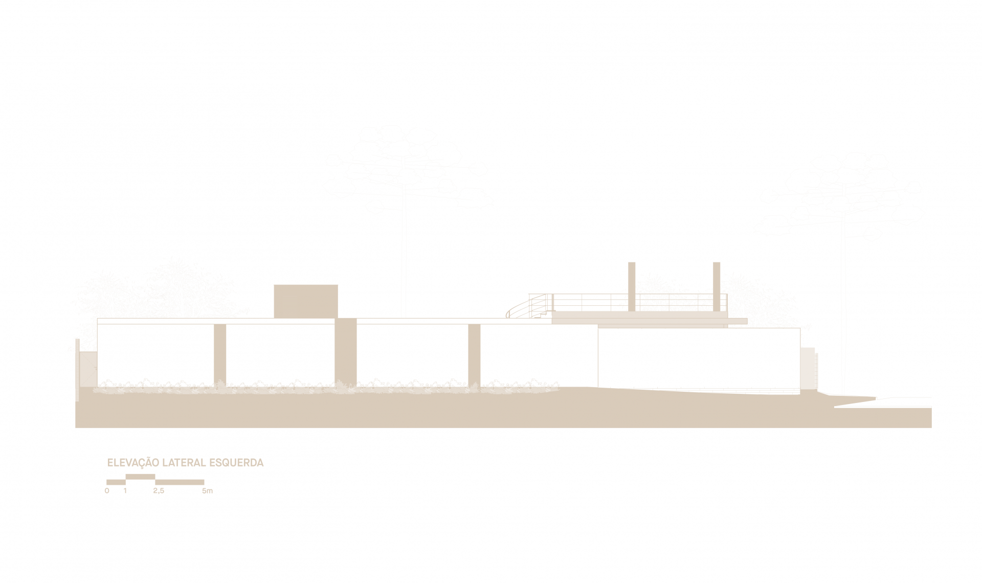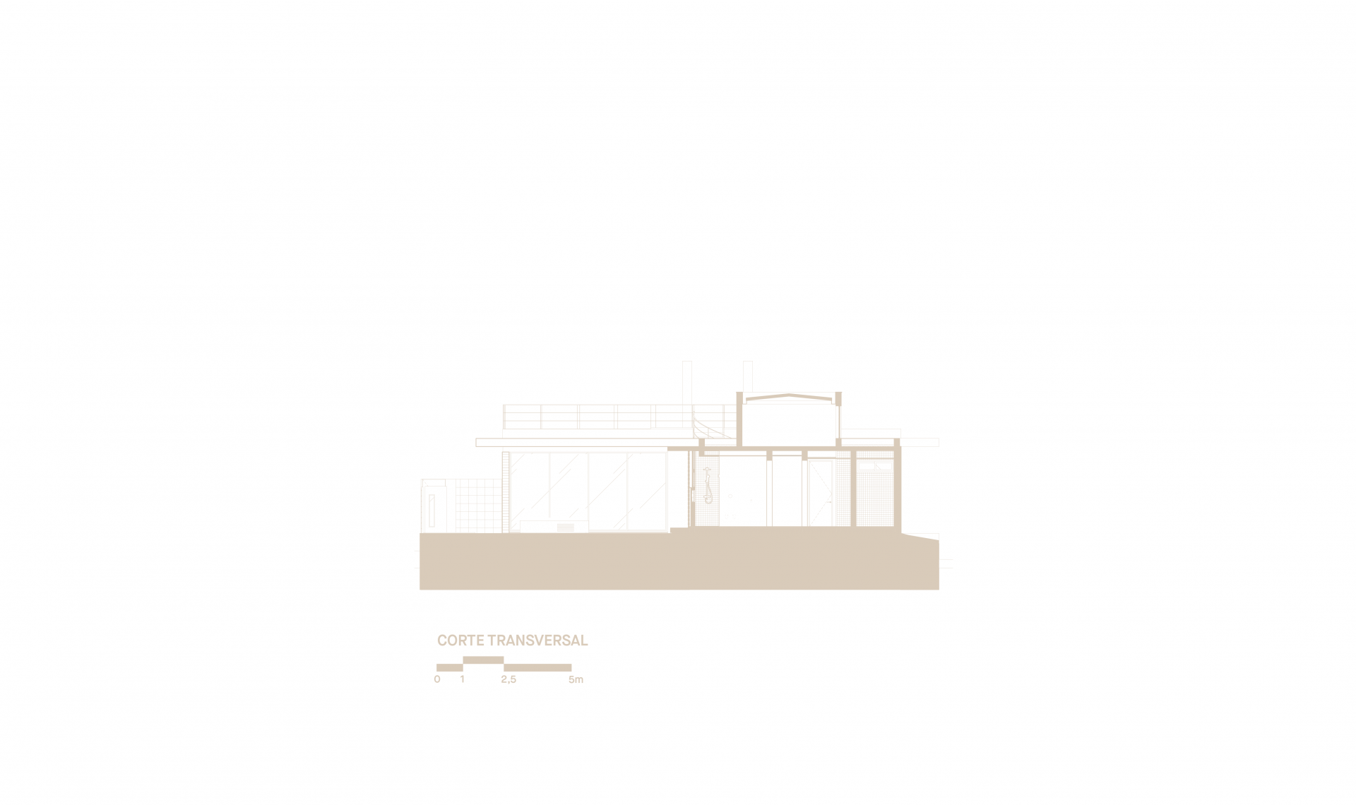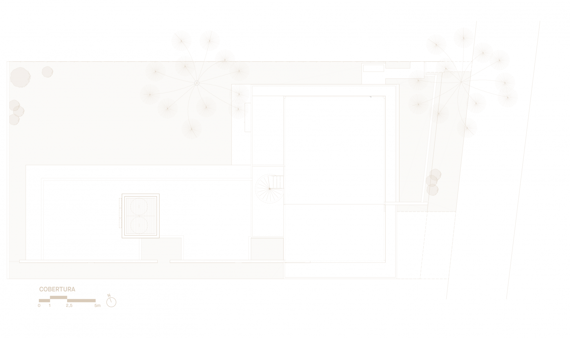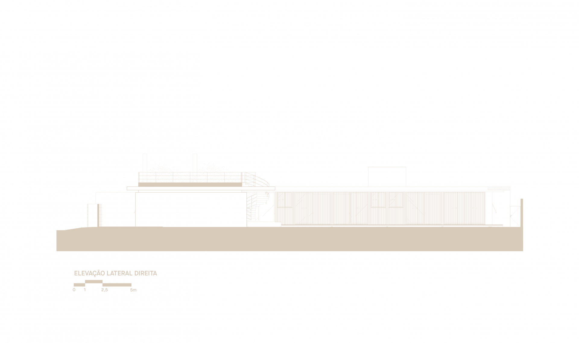Other strategies have been created to protect the environments from excessive sunlight, such as the application of eaves, wooden brises, and concrete cobogós. These are also used as a permeable layer of interaction between the social area and the internal street. In the intimate area, expanded clay helps with thermal protection, while in the social area, the terrace floor in Goiás green stone does the job.