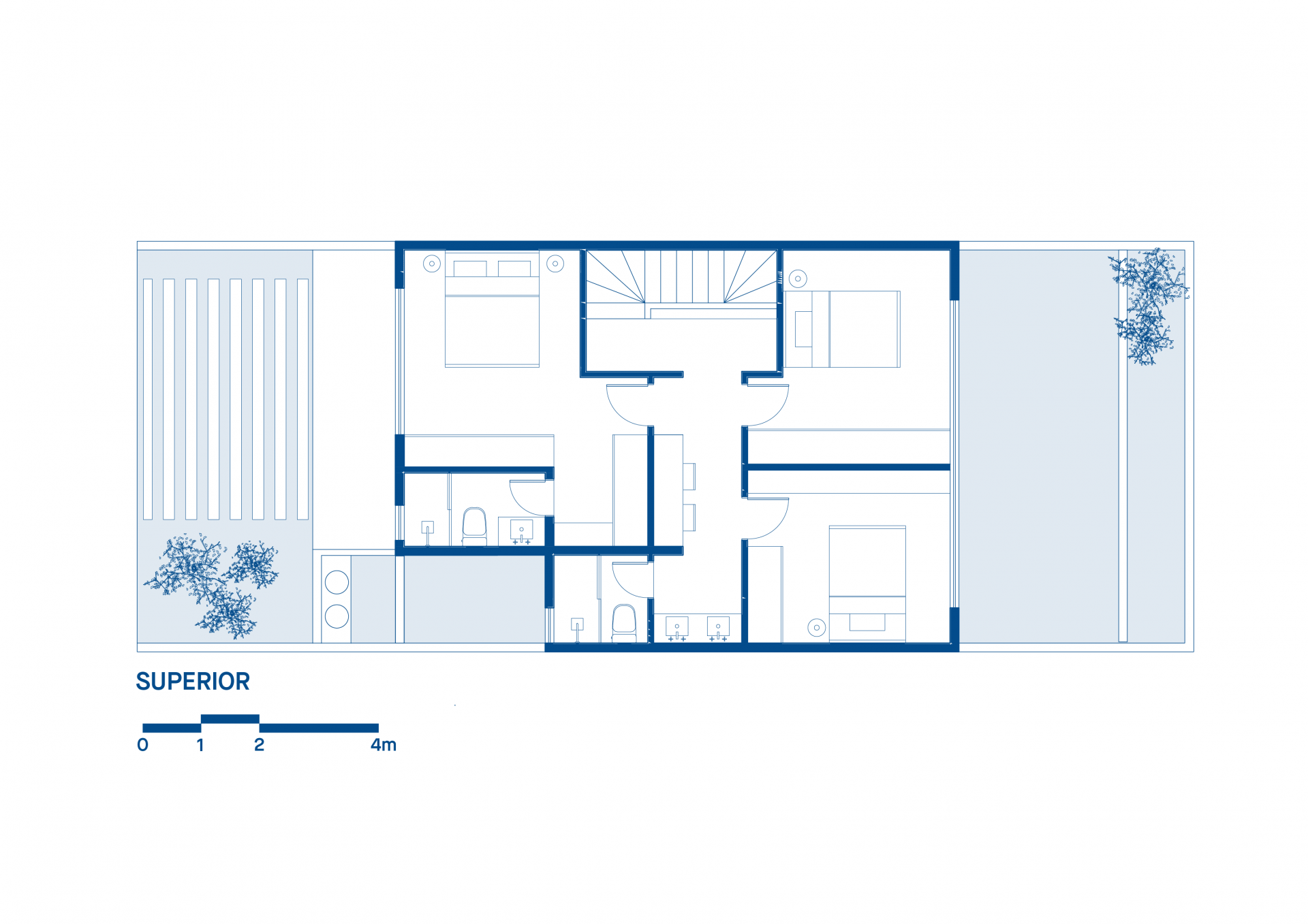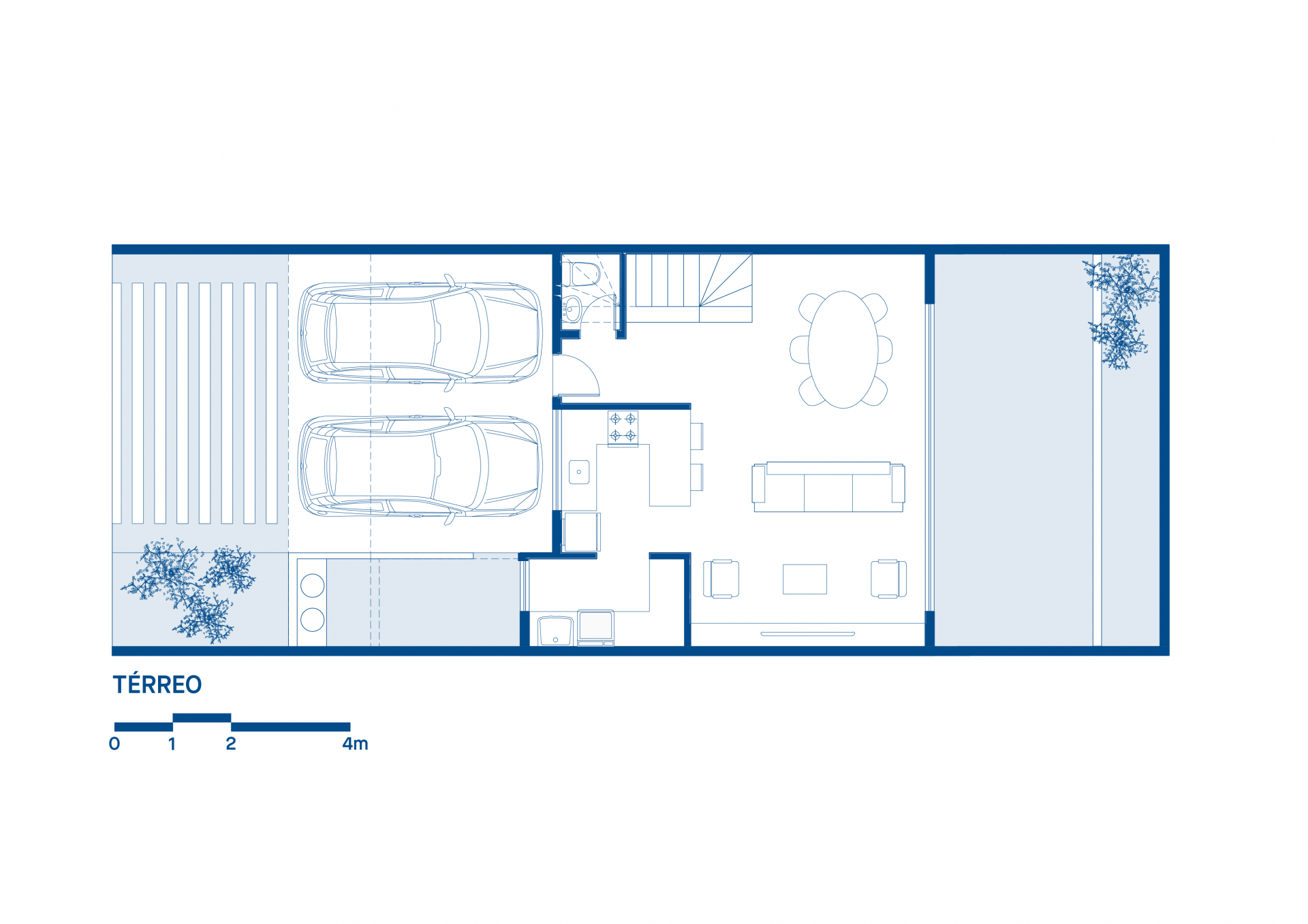 The Boreal house is located in a gated community in the north of Curitiba. The plot, seven meters wide and eighteen meters deep, has houses on the boundaries on both sides. The house was conceived for commercialization. The premise of the investors was to create a product with good external space and qualitative sunlight, in addition to fulfilling the basic program for a family of four. The identity of the project was inspired by the neighborhood and the history of its immigrants. Based on the iconic design of their old houses, we got to an elegant and at the same time cozy volume, with a gable roof and external wooden cladding. The plan is effectively distributed over three floors, and the total built area is 167.92m². On the ground floor, the semi-covered garage for two cars is the first extrusion of a pure volume, which makes the house seems like it’s supported by the side neighbors. The sunny patio and the laundry are next to the garage, getting the morning sun and leaving the backyard free. Through the front access, there is a small toilet on the left side and the open kitchen on the right. The staircase is in the lateral of the volume, which allows for a social area – composed by the kitchen, living room, dining room, garden, and barbecue – that is fully integrated, totalling 65m². On the second floor, there are two bedrooms and the suite. The second extrusion of the volume creates a void that allows ventilation in the two bathrooms. The suite receives the morning sun from the east façade and also the best view. The other two bedrooms have a west facade. In the circulation, there is the linen storage, and the bathroom of the rooms has a boudoir, which allows simultaneous use. In the attic, the last extrusions of the volume cut off the roof, creating a balcony on one side and a jardinière on the other, which ensures the cross ventilation of the room. Over the stairs, there is zenith lighting that allows light to reach the entire floor, which can be used as an office, home theater, playroom, or a music room. Despite the conventional construction system, masonry and concrete structure, there are qualitative elements for the thermal and visual comfort of the house. The roof is made of white sandwich panels with a core of polyurethane foam, which reduces heat absorption. Also, the aluminium frames are carefully designed to take advantage of the visuals as well as the light and heat inputs. Furthermore, the autoclaved wood cladding creates a layer of protection and shades the masonry, balancing the thermal variation of the different spaces of the house. The result is a compact and efficient design, which captures the essence of the northern hemisphere architecture and makes use of lighting and straight lines as key pieces, making the interior spaces cozy in both winter and summer.