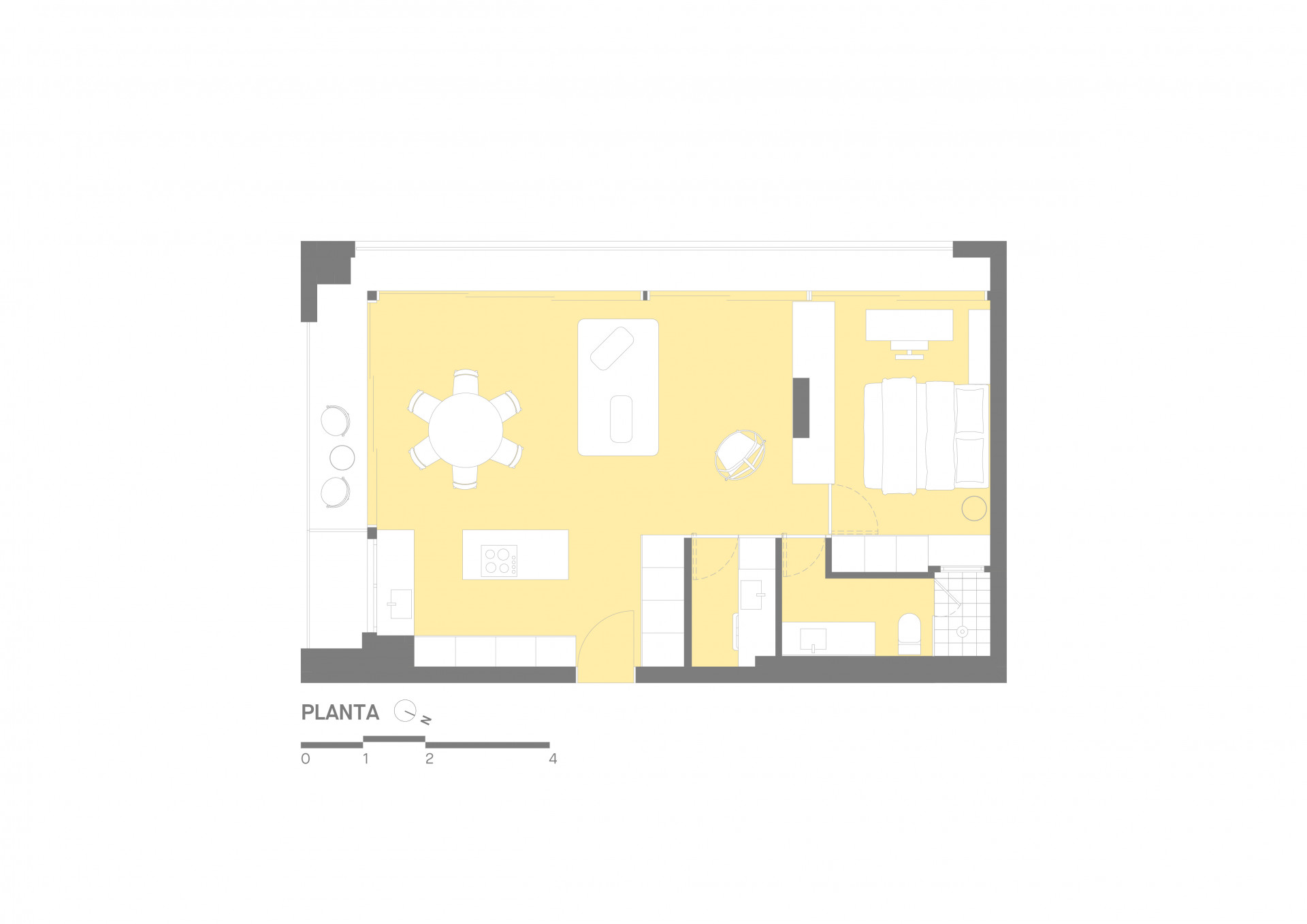 O resultado é um apartamento que une coerência formal e vitalidade, revelando um espaço contínuo e preciso.