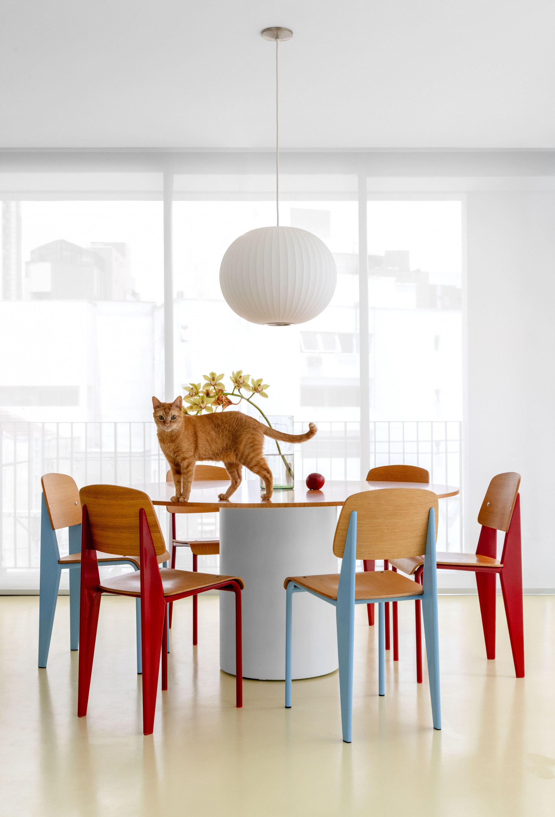 Para completar a atmosfera, o mobiliário recorre a ícones do design moderno, peças atemporais que dialogam entre si e incorporam, também, pontos de cor que enriquecem a composição